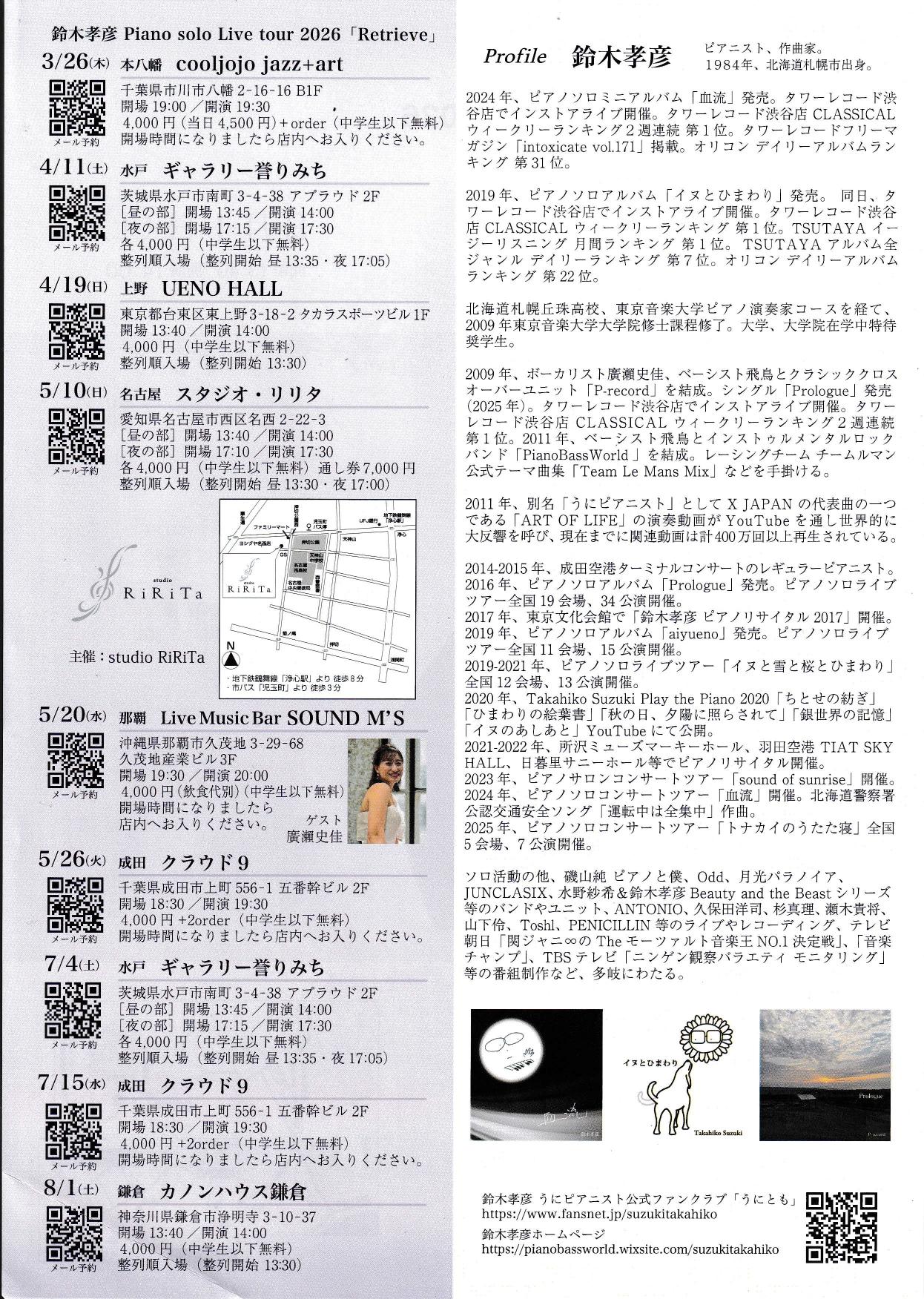 1F テーブル、椅子、CDプレイヤー 2F グランドピアノ(ペトロフP173)、客席40脚、有料備品(譜面台、ミキサー、スピーカー、マイクなど)。 キッチン 湯沸かしポット、冷蔵庫、IH3口、湯飲み茶わん、電子レンジ(1Fのみ) 共通 折り畳み机(幅150*奥行45cm)20本、丸椅20脚、ポスター貼付用立て看板(縦60*横40cm)、 ホワイトボード、姿見 |